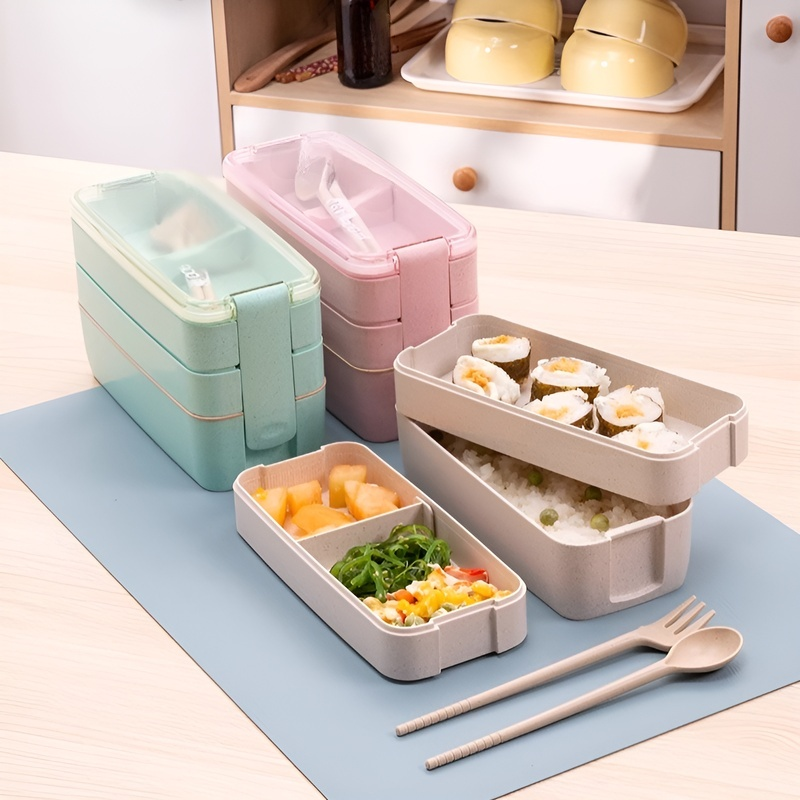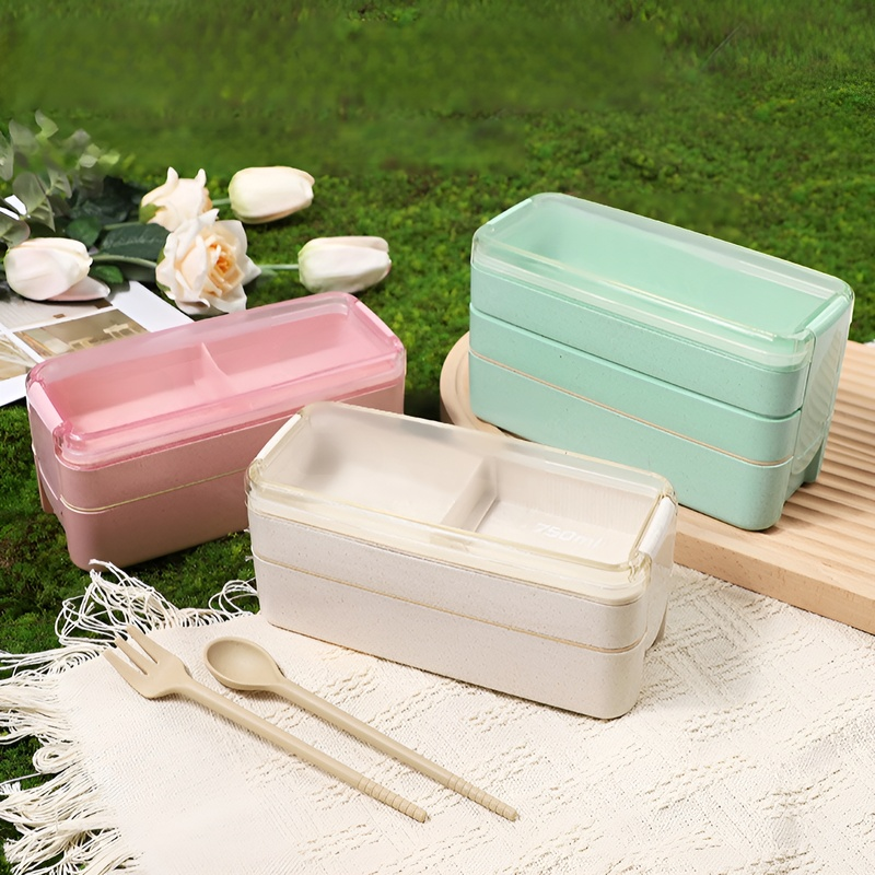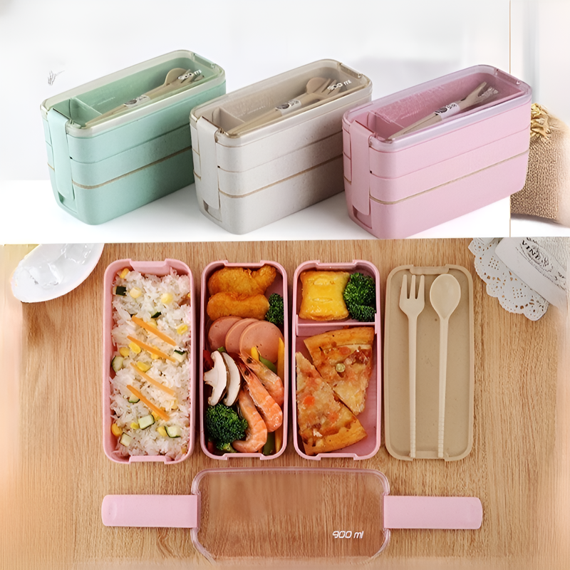 Three-layer wheat straw lunch box